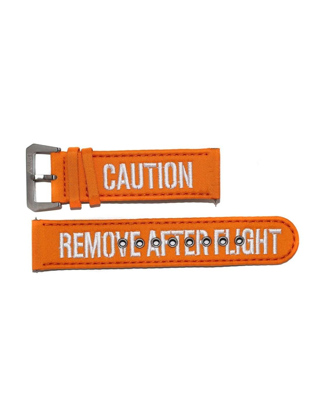 Strap AVIADOR REMOVE AFTER FLIGHT orange and black text of 24 mm in nylon and leather.