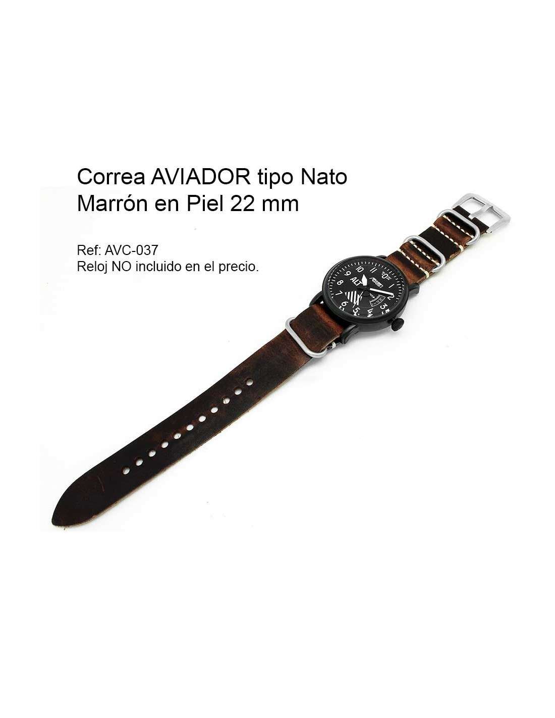 Brown Nato type AVIADOR Strap in Leather 22 mm AVC-037.