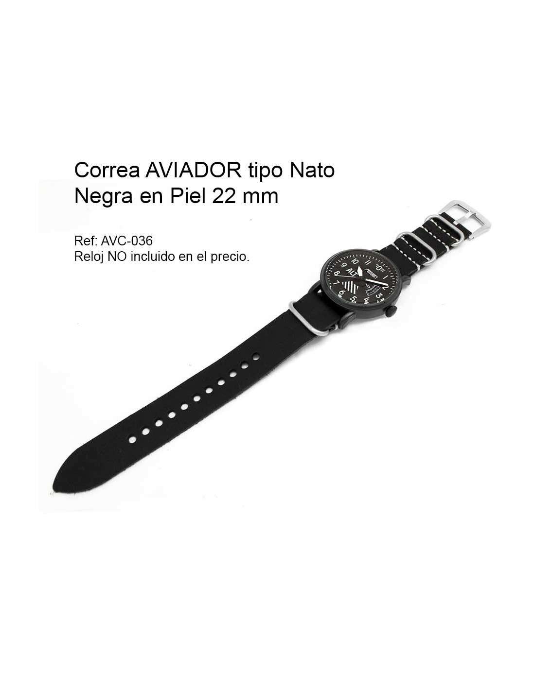 - Bracelet AVIATEUR en Cuir Noir de type Nato 22 mm AVC-036.