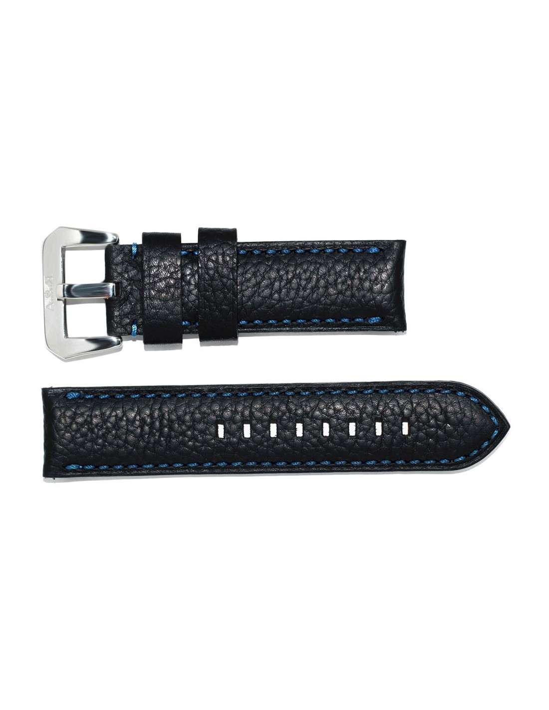 - Cinturino pelle nera con cuciture blu, 24 mm.*